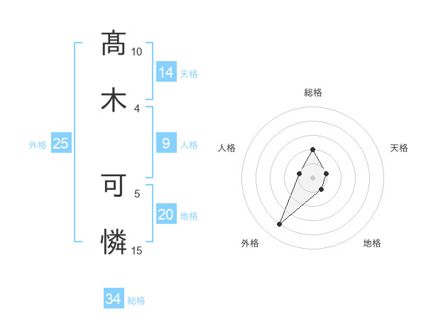 髙木 可憐さんを姓名の画数から五運を鑑定