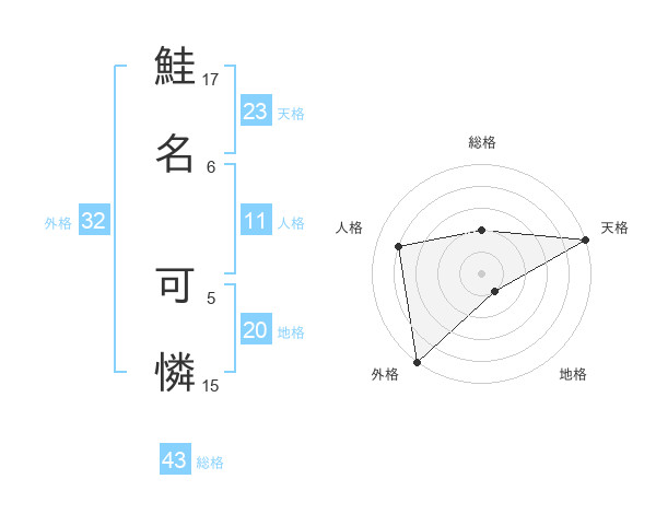 鮭名 可憐さんを姓名の画数から五運を鑑定