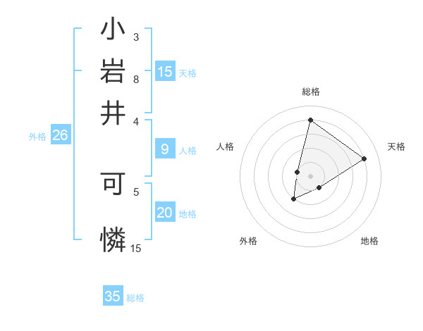 小岩井 可憐さんを姓名の画数から五運を鑑定