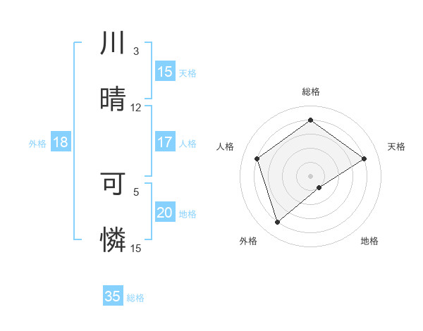 川晴 可憐さんを姓名の画数から五運を鑑定