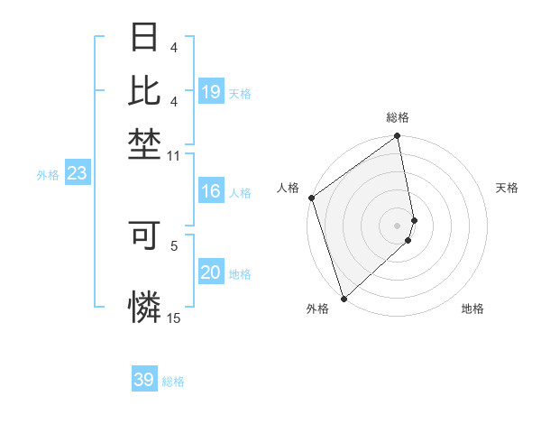 日比埜 可憐さんの総格は39画の5点!