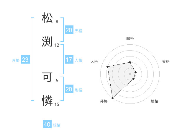 松渕 可憐さんを姓名の画数から五運を鑑定