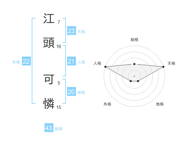 江頭 可憐さんを姓名の画数から五運を鑑定