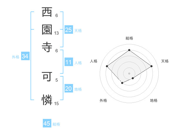 西園寺 可憐さんを姓名の画数から五運を鑑定