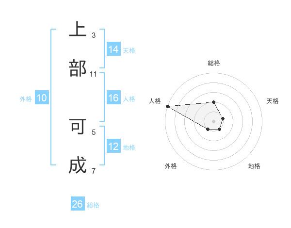 上部 可成さんの総格は26画の2点!