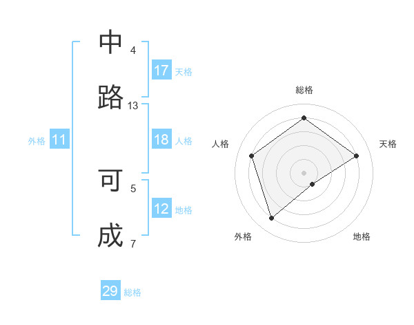 中路 可成さんの天格は17画の4点!
