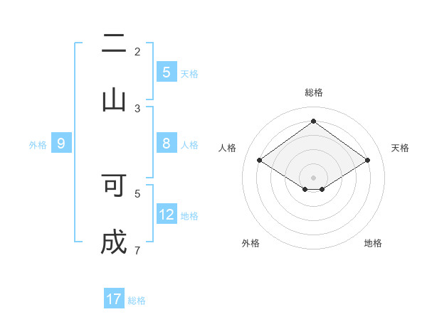 二山 可成さんの総格は17画の4点!