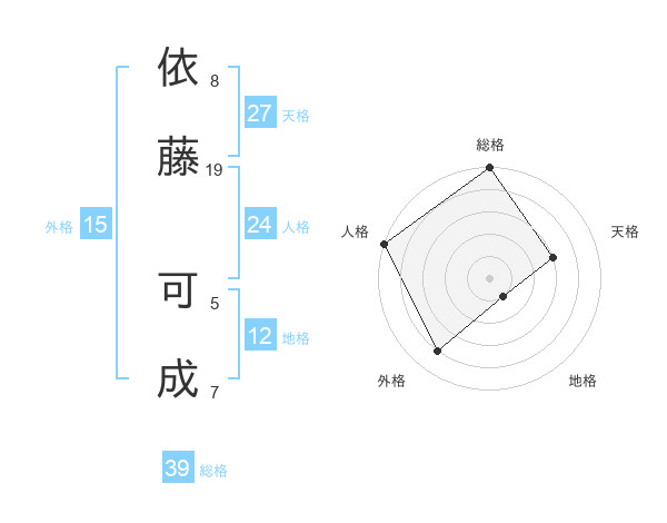依藤 可成さんの総格は39画の5点!