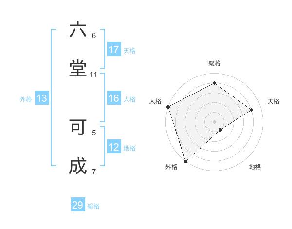 六堂 可成さんの外格は13画の5点!