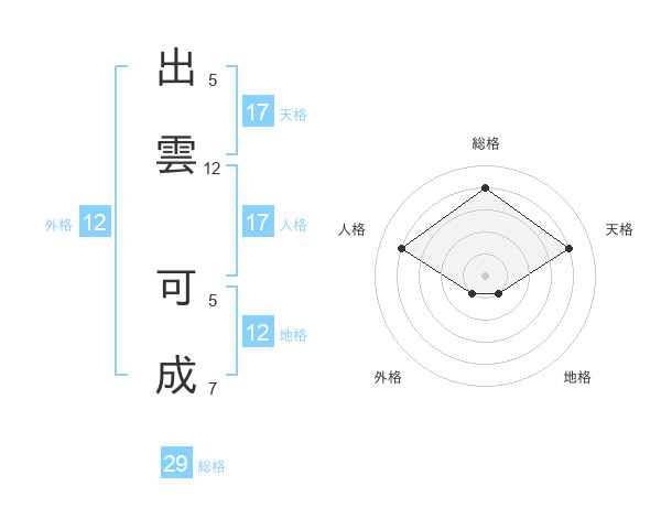 出雲 可成さんの総格は29画の4点!