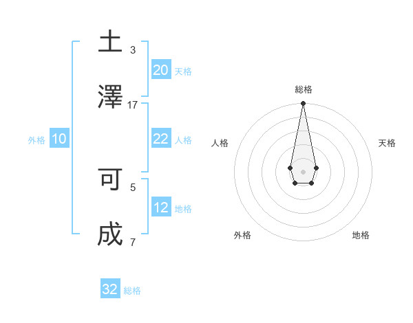 土澤 可成さんの総格は32画の5点!