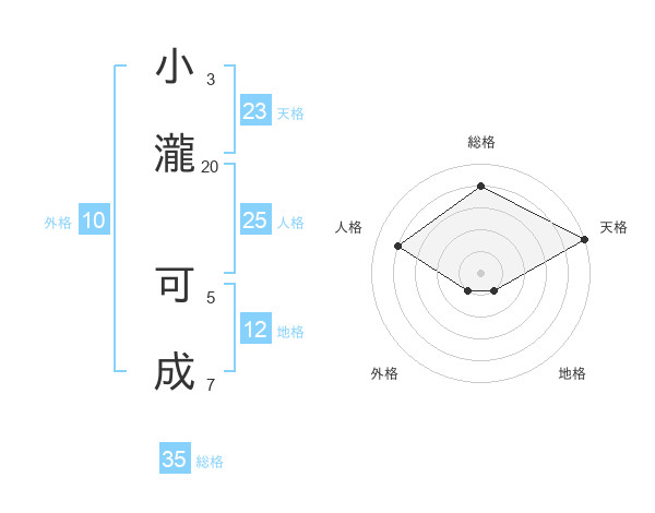 小瀧 可成さんの総格は35画の4点!