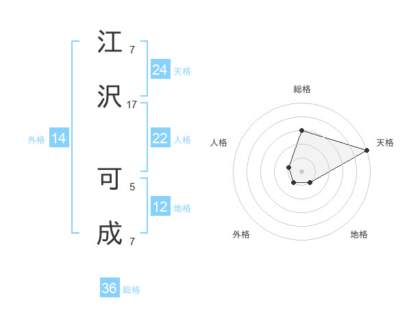 江沢 可成さんの天格は24画の5点!