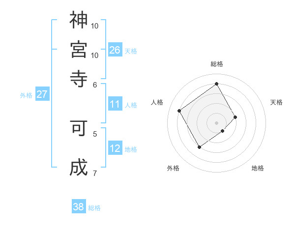 神宮寺 可成さんの総格は38画の4点!