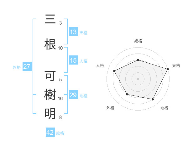 三根 可樹明さんを姓名の画数から五運を鑑定