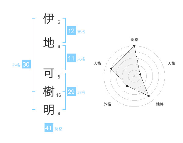 伊地 可樹明さんの総格は41画の5点!