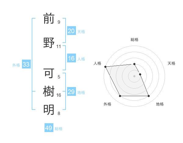 前野 可樹明さんを姓名の画数から五運を鑑定