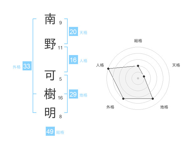 南野 可樹明さんの総格は49画の2点!