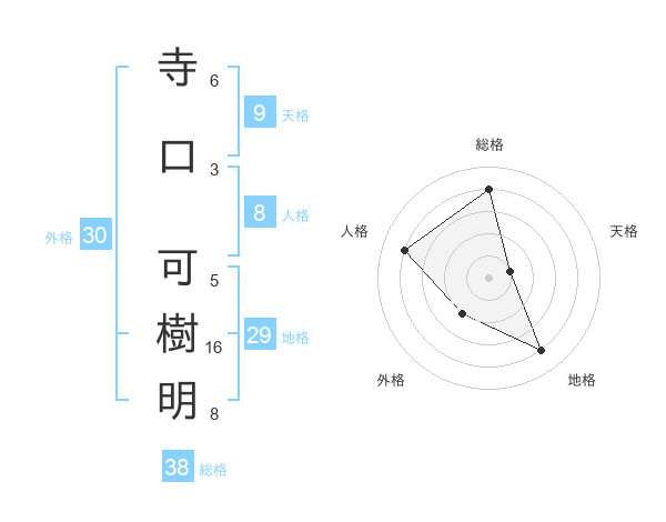 寺口 可樹明さんの総格は38画の4点!
