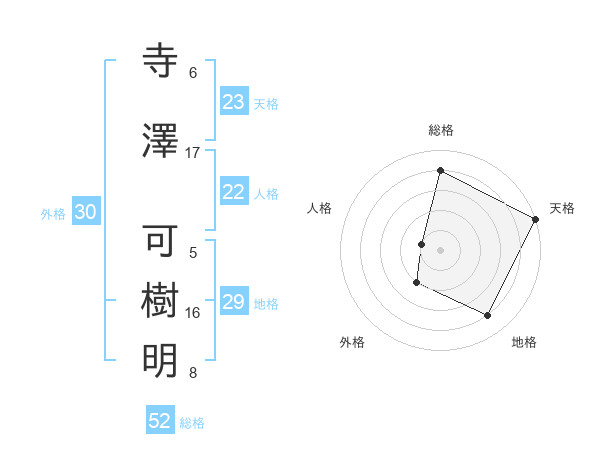 寺澤 可樹明さんを姓名の画数から五運を鑑定
