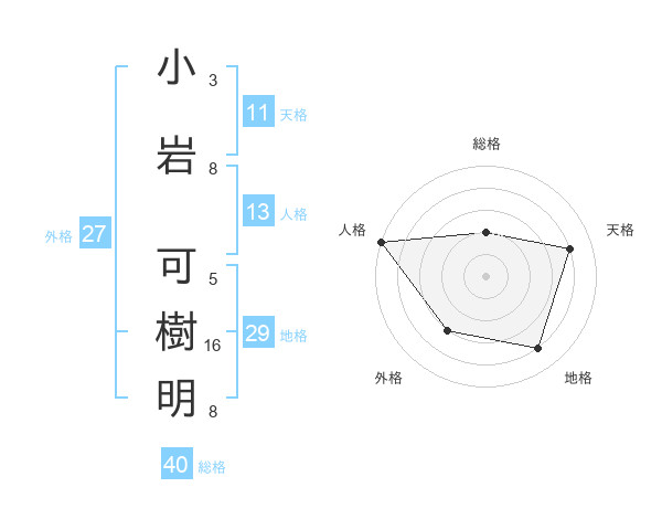 小岩 可樹明さんを姓名の画数から五運を鑑定
