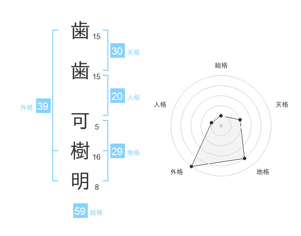歯歯 可樹明さんの総格は59画の1点!
