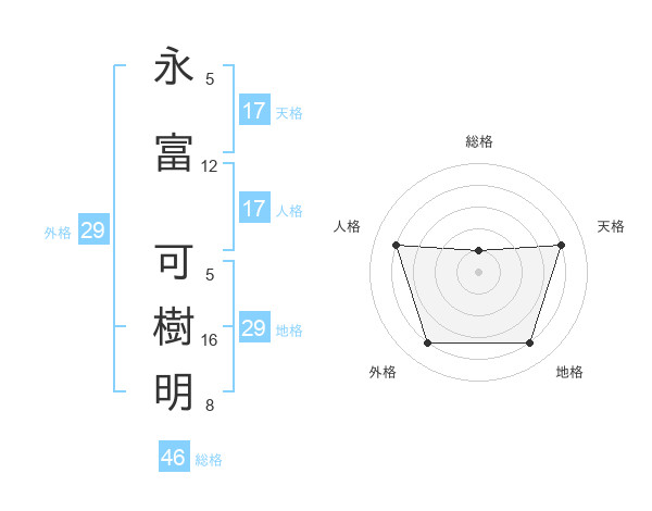 永富 可樹明さんを姓名の画数から五運を鑑定