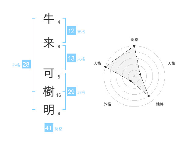 牛来 可樹明さんの総格は41画の5点!