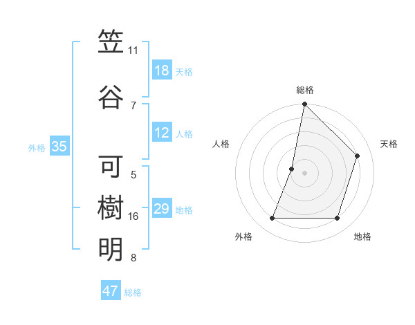 笠谷 可樹明さんを姓名の画数から五運を鑑定