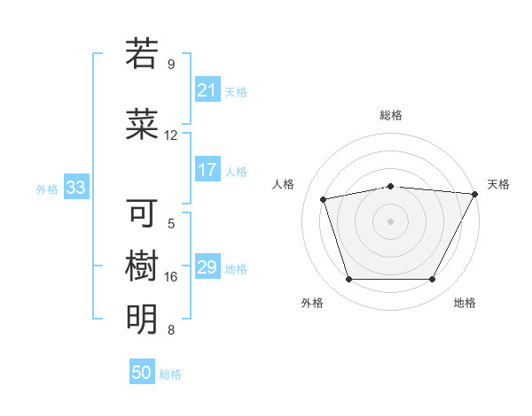 若菜 可樹明さんを姓名の画数から五運を鑑定