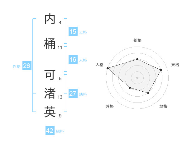 内桶 可渚英さんを姓名の画数から五運を鑑定