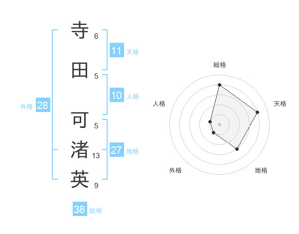 寺田 可渚英さんの総格は38画の4点!