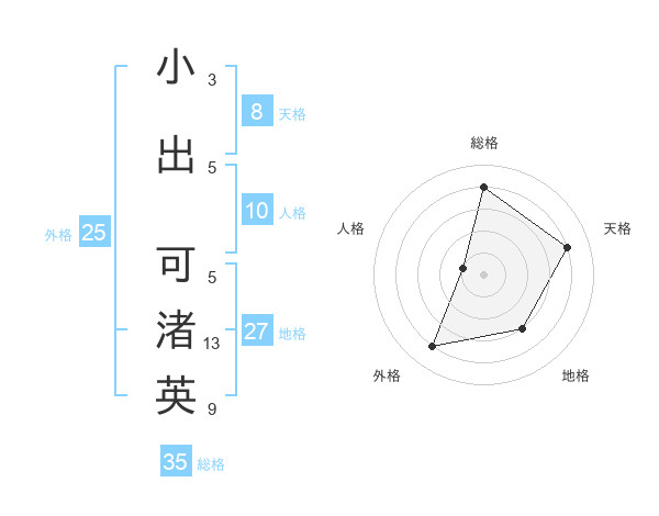 小出 可渚英さんの天格は8画の4点!