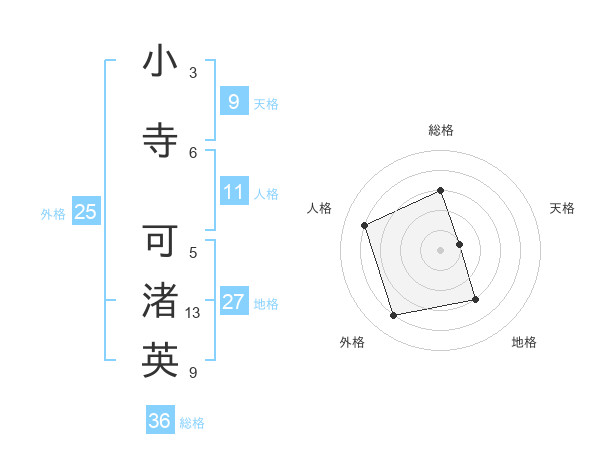 小寺 可渚英さんを姓名の画数から五運を鑑定