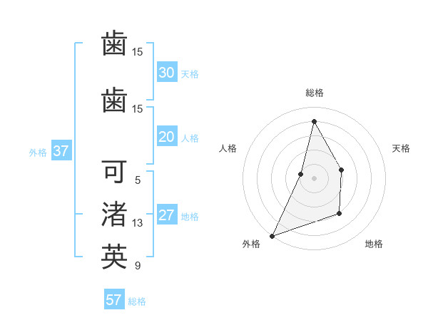 歯歯 可渚英さんを姓名の画数から五運を鑑定