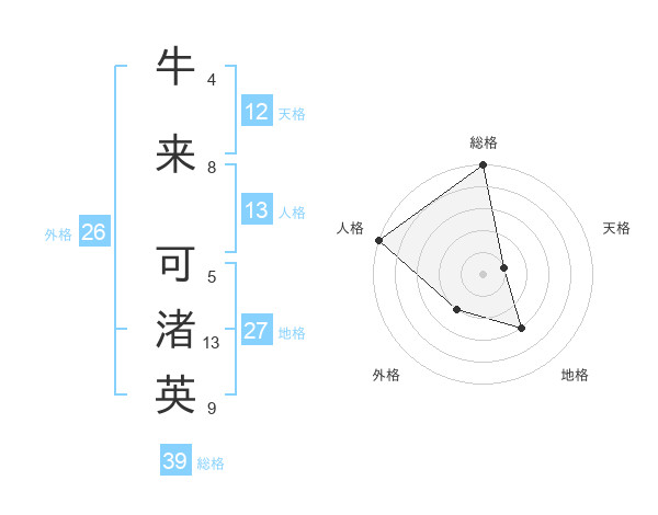 牛来 可渚英さんの総格は39画の5点!