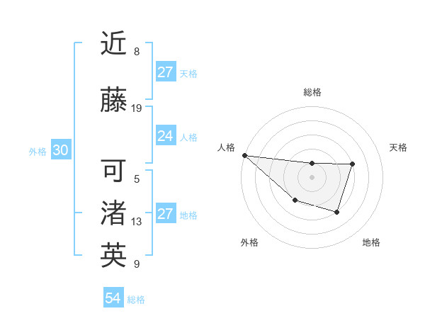 近藤 可渚英さんの総格は54画の1点!