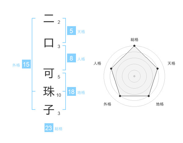 二口 可珠子さんを姓名の画数から五運を鑑定