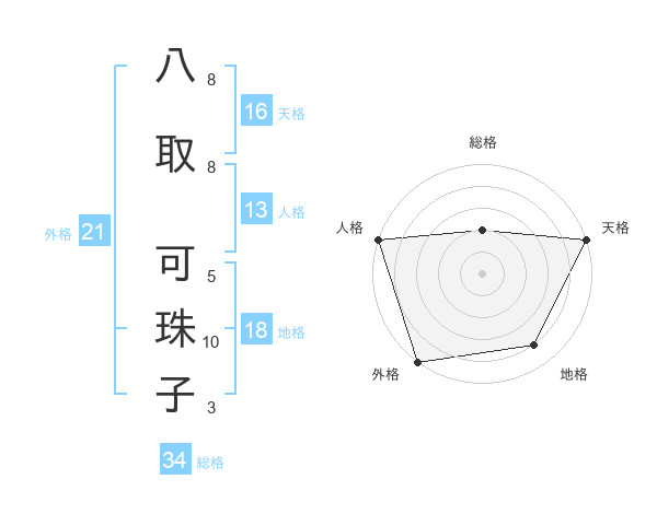 八取 可珠子さんを姓名の画数から五運を鑑定