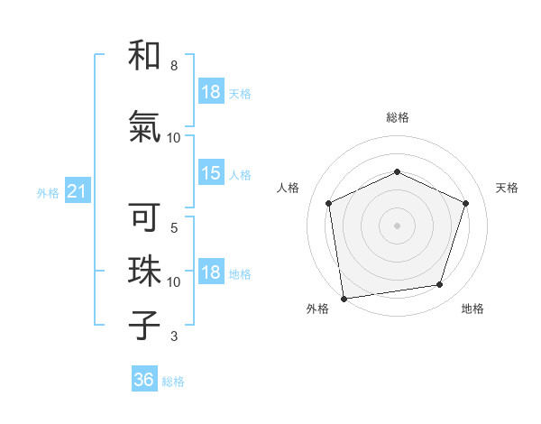 和氣 可珠子さんの天格は18画の4点!