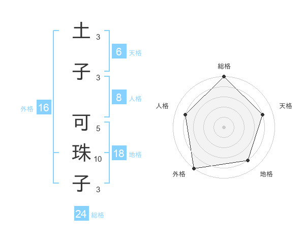 土子 可珠子さんの総格は24画の5点!