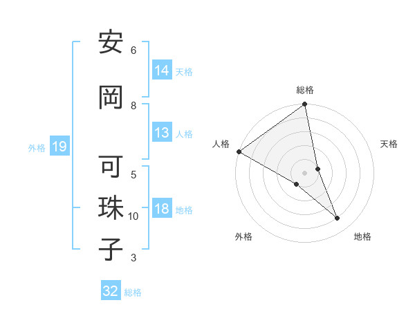 安岡 可珠子さんを姓名の画数から五運を鑑定