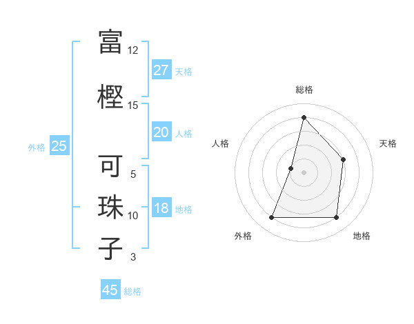 富樫 可珠子さんの総格は45画の4点!
