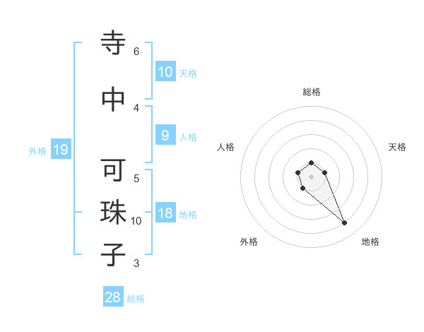 寺中 可珠子さんを姓名の画数から五運を鑑定