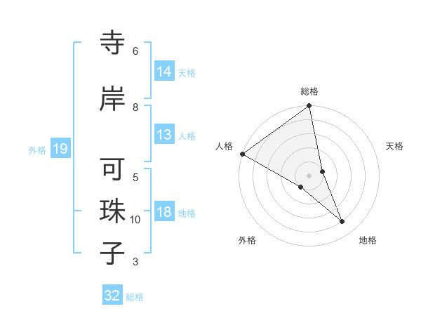 寺岸 可珠子さんの総格は32画の5点!