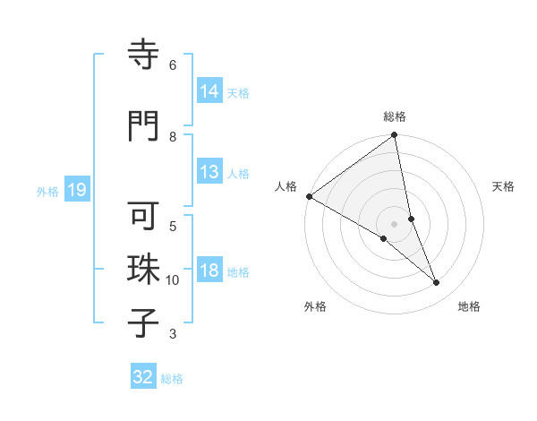 寺門 可珠子さんを姓名の画数から五運を鑑定