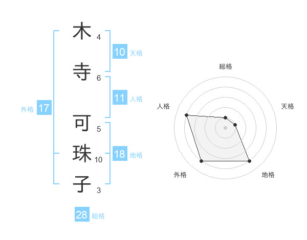木寺 可珠子さんを姓名の画数から五運を鑑定