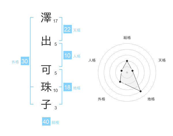 澤出 可珠子さんの総格は40画の2点!