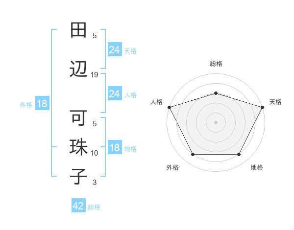 田辺 可珠子さんの天格は24画の5点!