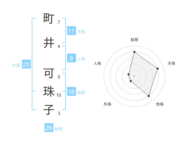 町井 可珠子さんを姓名の画数から五運を鑑定